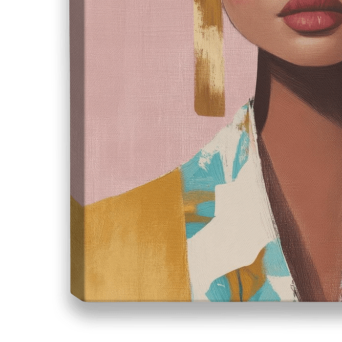 Modern portret met een roze achtergrond. Een bijzondere blikvanger voor je interieur! Kies zelf het formaat en materiaal bij dit werk en maak het helemaal naar wens.