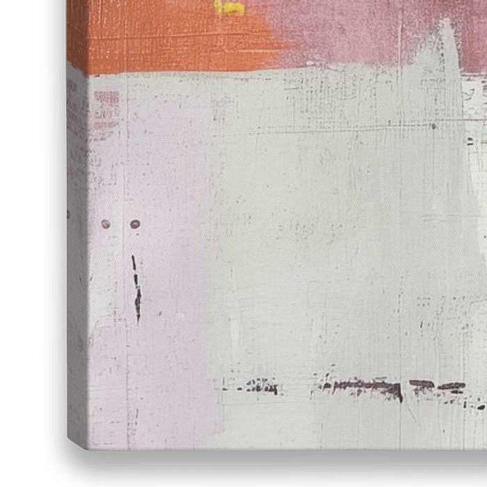 Details: abstract, modern, schilderij, geometrisch, canvas, kleurrijk, geel, roze, grijs, zwart, wit