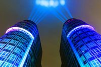 Koop de foto Moderne kantoorgebouwen met speciale verlichting van Frank Herrmann op canvas, aluminium dibond, (ingelijste) fotoprint, behang en ArtFrame, op maat geprint in Fine-Art kwaliteit.