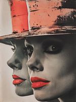 Het kunstwerk "The Hidden Self" fascineert door zijn surrealistische compositie en expressieve elementen. Het toont twee boven elkaar geplaatste gezichten van een vrouw, waarvan de felrode lippen en roze hoed contrasteren met de gedesaturiseerde…