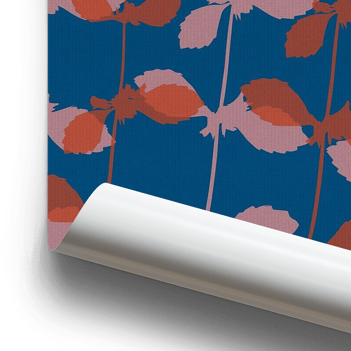 Koop dit abstracte kunstwerk Moderne minimalistische botanische kunst. Bladeren in roze en terracotta op blauw van Abstract Minimalist Art als print op canvas, aluminium dibond, (ingelijste) fotoprint, behang en ArtFrame. Voor jou op maat geprint in Fine-Art kwaliteit.