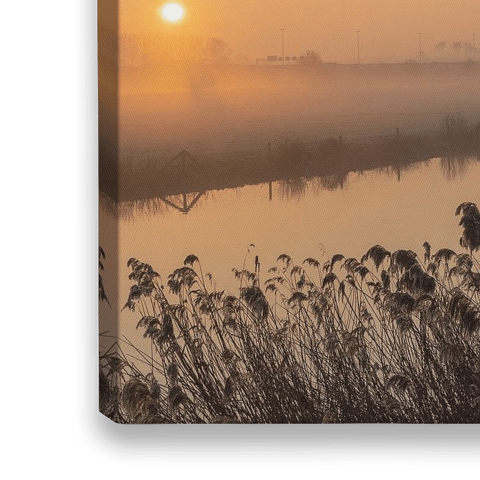 Koop dit landschapskunstwerk Molen in Beesd bij zonsopkomst en mist van Michelle Peeters op canvas, aluminium dibond, (ingelijste) fotoprint, behang en ArtFrame, op maat geprint in Fine-Art kwaliteit.