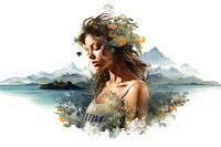 Koop dit digital art kunstwerk Mooie vrouw voor een tropisch eilandlandschap van ARTemberaubend als reproductie op canvas, aluminium dibond, (ingelijste) fotoprint, behang en ArtFrame, op maat geprint in Fine-Art kwaliteit.