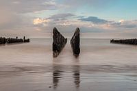 Staande mosselbanken aan de opaalkust bij Tardingen, enkele tientallen kilometers onder Calais. Bij laag water is hier veel bedrijvigheid door de mens. Bij hoog water verdwijnen de palen geheel onder water en doet de natuur zijn werk.
