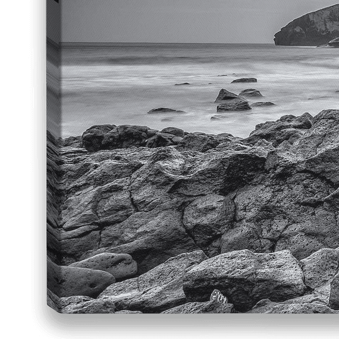 Mosteiros strand met uitzicht over de Atlantische Oceaan, gemaakt in monochrome.