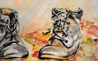 Schoenen/ Wandelen / Aquarel / Schilderkunst / Oude schoenen / Wandel schoenen / Veters / Kleuren / Schilderkunst / Stilleven /Figuratieve kunst / Fashion / Mode