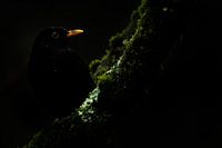 Ik fotografeerde deze merel na een regenbui in het bos, hierdoor komen de aanwezige kleuren nog feller uit zoals zijn gele snavel en het groene mos. De regendruppels zijn nog zichtbaar op zijn veren.