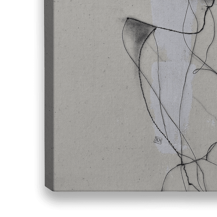De zwarte draad speelt de hoofdrol in mijn werken, geïnspireerd op de momenten van het leven, ik hoop de toeschouwer een moment of gevoel van herkenning te geven, een innerlijke beleving, iets waardoor je gaat dwalen in je eigen gedachten. Mijn losse draden staan voor groei & verandering. Deze bewegen mee met warmte & wind & zijn naar eigen gevoel te leggen op het doek. Ik hou van puur, materie & textuur.