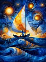 Koop dit abstracte kunstwerk Nacht in de boot van haroulita op canvas, aluminium dibond, (ingelijste) fotoprint, behang en ArtFrame, op maat geprint in Fine-Art kwaliteit.