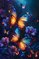 Koop dit bloemen kunstwerk Nachtbloemen en vlinders van haroulita op canvas, aluminium dibond, (ingelijste) fotoprint, behang en ArtFrame, op maat geprint in Fine-Art kwaliteit.
