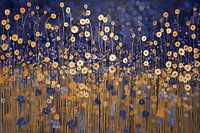 Koop dit bloemen kunstwerk Nachttuin in Blauw en Goud van Whale & Sons op canvas, aluminium dibond, (ingelijste) fotoprint, behang en ArtFrame, op maat geprint in Fine-Art kwaliteit.