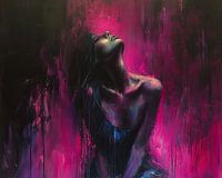 Details: vrouw, portret, dynamisch, expressief, neon, modern, abstract, kunst, schilderij, energiek