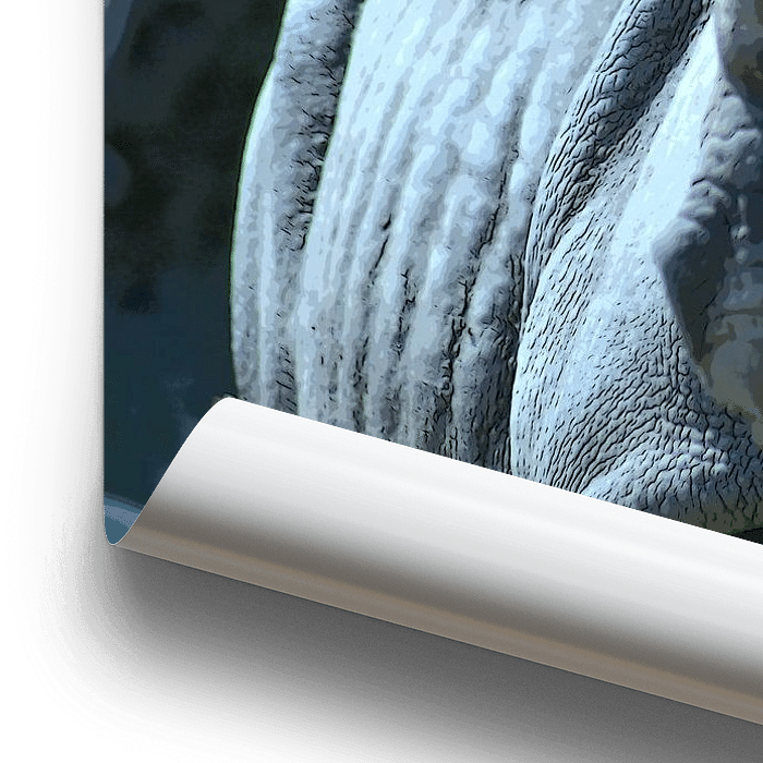 Een foto digitaal bewerkt tot striptekening. Een illustratie van een stoere neushoorn voor boven je bed in je junglekamer. Met deze krachtpatser kan je dromen over je eigen jungleboek..