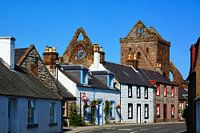 New Abbey is een pittoresk dorpje in het Zuid-Schotse graafschap Dumfries en Galloway. Op de achtergrond staan de ruïnes van " Sweetheart Abbey" waarmee een romantisch verhaal uit de Middeleeuwen is verbonden. Schotland, in de zomer van 2013.