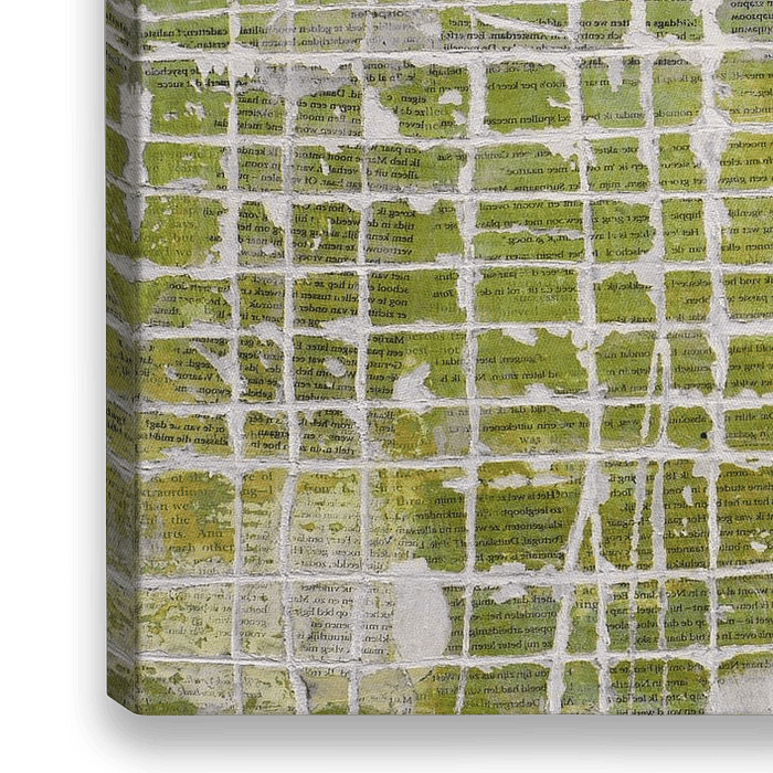 Een abstract urban collage kunstwerk, dat is opgebouwd in verschillende lagen. Lagen papier, tijdschrift en acrylverf. Het raster is met een stanleymes uitgesneden. Het geheel heeft een oud en verweerde aanblik zoals veel van mijn werken. Het is en blijft een inspiratiebron voor mij; oude vervallen en verweerde muren, posters en gebouwen.