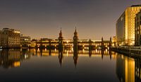 Koop de foto Oberbaumbrücke 's nachts met reflectie van Frank Herrmann op canvas, aluminium dibond, (ingelijste) fotoprint, behang en ArtFrame, op maat geprint in Fine-Art kwaliteit.