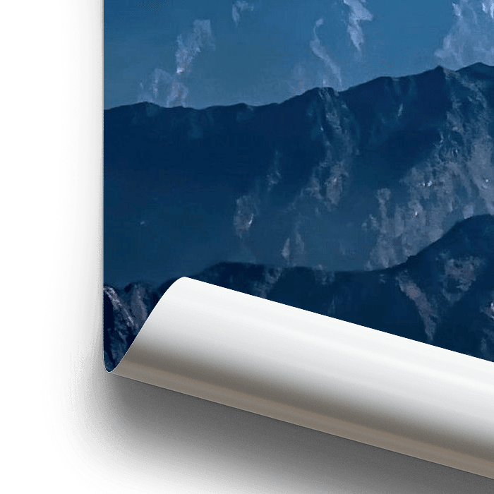 Gefotografeerd vanuit het vliegtuig, boven de Himalaya. Je ziet de besneeuwde toppen liggen in de verte. De nevel geeft een mysterieuze sfeer aan de foto.