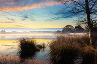 Vroeg in de morgen vlak voor de zon opkomt is het nog heerlijk rustig aan dit meertje. Een klein beetje nevel boven het water, het geluid van de eenden verderop, en het zingen van de vogels maken het plaatje compleet. Het licht is elke minuut anders en dat blijft fascinerend om te zien.