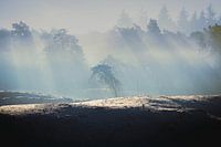 Koop dit landschapskunstwerk Ochtendnevel langs bosrand bij opkomende zon op zandverstuiving van Fotografiecor .nl op canvas, aluminium dibond, (ingelijste) fotoprint, behang en ArtFrame, op maat geprint in Fine-Art kwaliteit.