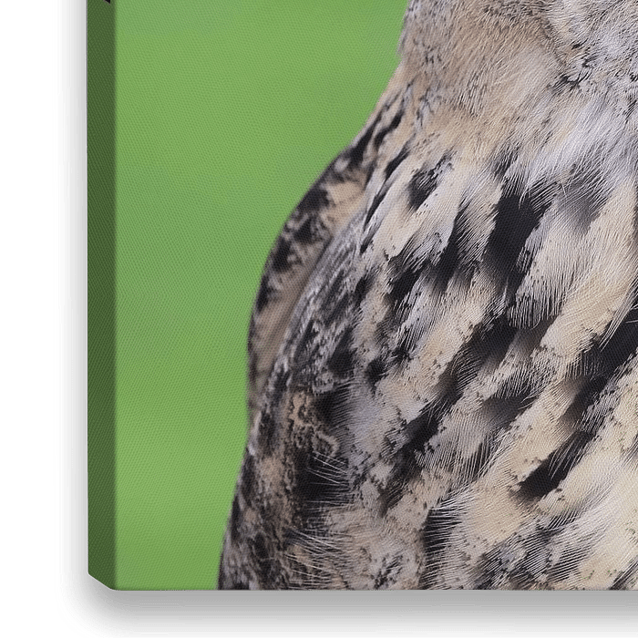 Oehoe, ook wel Bubo bubo. De naam komt van het roepgeluid van deze uil. De oehoe is een van de grootste uilensoorten. Mooi groene bokeh achtergrond van gras.