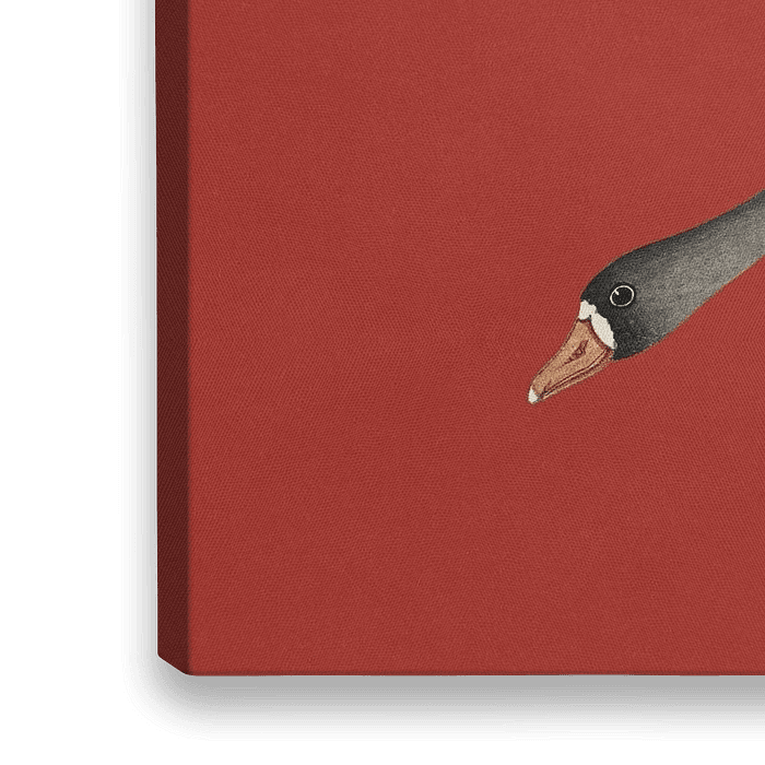 Ik heb zijn portret van twee ganzen bij volle maan digitaal bewerkt, vereenvoudigd en op een rode achtergrond geplaatst. Ik wilde de oorspronkelijke schoonheid van het kunstwerk bewaren…