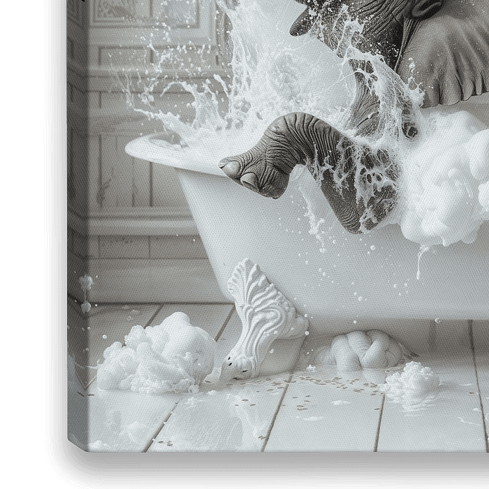 Badkamer kunstwerk met een elegante olifant in bad. De artistieke zwart-witfoto legt de gratie van de olifant vast terwijl hij ontspant in zijn ongewone omgeving. Deze betoverende afbeelding geeft je badkamer een unieke persoonlijkheid en laat je gasten versteld staan. Een perfect gespreksonderwerp voor je toilet dat de grenzen tussen…