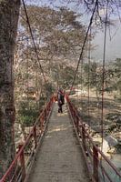 Een prachtige brug in het landschap van Sapa met daarop een prachtige dame in traditionele kleding.