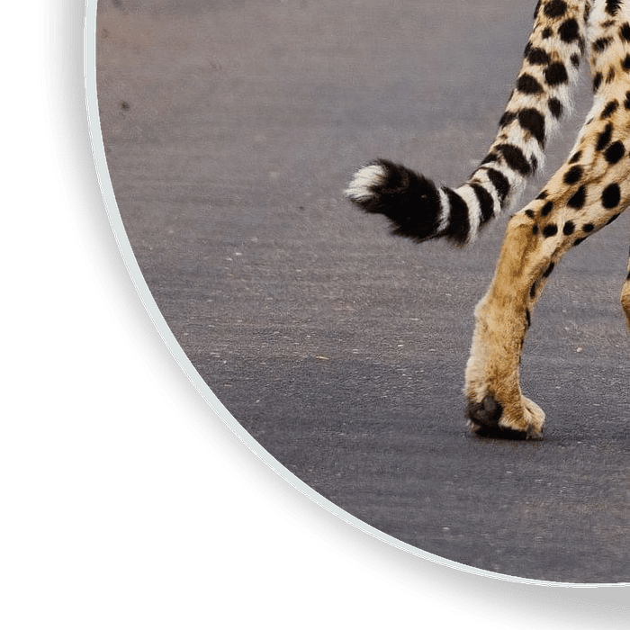 Deze foto laat een iconisch safari-moment zien dat tegelijk krachtig en verrassend persoonlijk aanvoelt. Een jachtluipaard loopt rustig over de weg, midden in zijn territorium, en werpt nog één blik over zijn schouder. Geen haast, geen jacht – alleen pure aanwezigheid. De ontspannen houding en open blik maken dit beeld bijna intiem,…