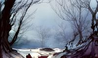 Op een afgelegen landweg is een brug ondergesneeuwd. Onder de dikke sneeuwlaag is zacht het gemurmel van het riviertje te horen, maar ook het stromende water is niet meer te zien. In deze pauze tussen twee sneeuwstormen waagt niemand zich op de verlaten weg.