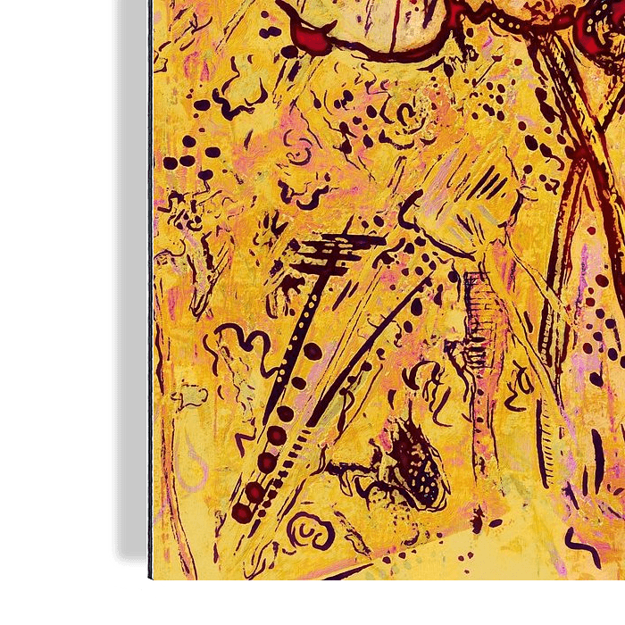 Dit werk heb ik de titel "oneindige zomer" gegeven. Deze abstracte bloemen zijn omhuld met zomerse kleuren. Goud gele tinten vormen met oranje en roze accenten een warm zomers kunstwerk. Dit werk heeft een staande oriëntatie. De basis van dit werk is een handgeschilderd mixed media werk waarbij ik het schilderij met potlood, waterverf, acrylverf op aquarelpapier heb geschilderd. Dit schilderij heb ik met verschillende digitale tekentechnieken uitgewerkt tot dit zomerse werk.