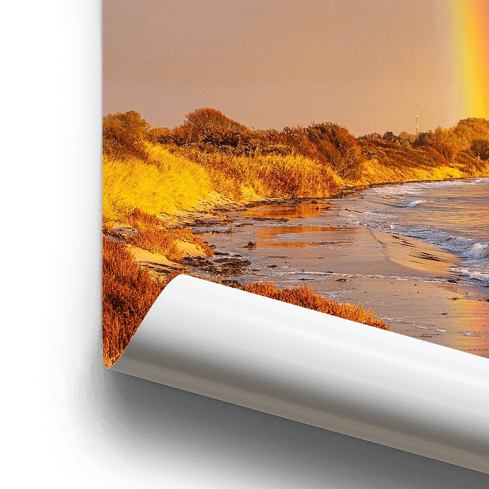 Koop dit landschapskunstwerk Oostzeekust met regenboog op het eiland Mön in Denemarken van Rico Ködder op canvas, aluminium dibond, (ingelijste) fotoprint, behang en ArtFrame, op maat geprint in Fine-Art kwaliteit.