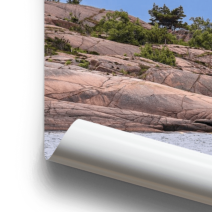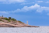Koop de foto Oostzeekust met rotsen en vuurtoren op het eiland Blå Jungfr van Rico Ködder op canvas, aluminium dibond, (ingelijste) fotoprint, behang en ArtFrame, op maat geprint in Fine-Art kwaliteit.