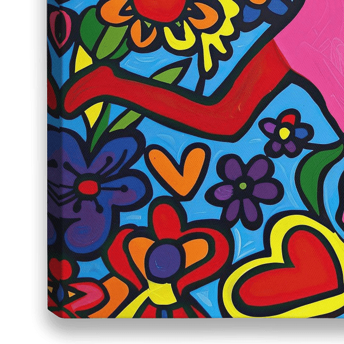 Details: pop-art, silhouet, kleurrijk, bloemen, hart, beweging, vrolijk, modern, jeugdig, dynamisch