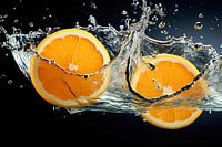 Fascinerend motief van sinaasappelschijfjes ondergedompeld in water, in de stijl van een foto.