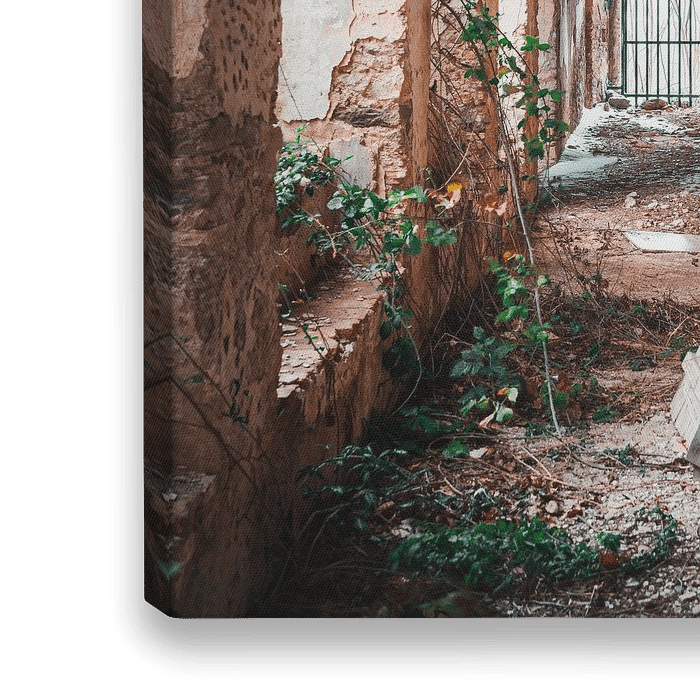Dit is een foto van een oude verlaten gang in een klooster dat bovenop een heuvel staat in het Italiaanse landschap. Ik heb de foto gemaakt terwijl het buiten hard aan het waaien en sneeuwen was. Verderop in de gang zie je dat er sneeuw op de grond ligt. Het was hier heel koud!