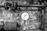 Oude luchtdrukmeter in een verlaten oude fabrieksruïne uit de voormalige DDR Oost-Duitsland