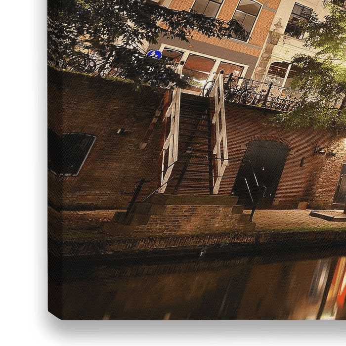 Koop de foto Oudegracht in Utrecht tussen Weesbrug en Hamburgerbrug van Donker Utrecht als print op canvas, aluminium dibond, (ingelijste) fotoprint, behang en ArtFrame. Voor jou op maat geprint in Fine-Art kwaliteit.