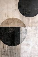 Deze abstracte compositie, bestaande uit overlappende cirkels in zwart, wit en beige, straalt een moderne, minimalistische elegantie uit die naadloos opgaat in een hedendaagse woonkamer of kantoorruimte. De subtiele textuur en de suggestie van diepte door het slimme gebruik van monochrome schakeringen geven dit stuk een dynamisch gevoel…