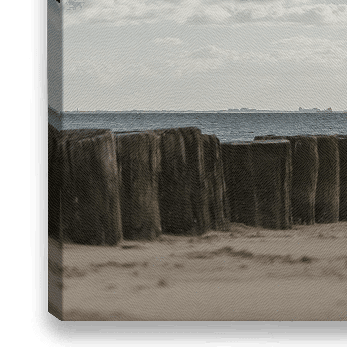 De paalhoofden die op het strand staan bij Vlissingen Zeeland staan er ter bescherming tegen de zee. Het zicht op de Noordzee achter de palen geven een weids gevoel.