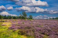 Bloeiende heidevelden omgeven de uit de oudheid stammende hunebedden .