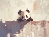 Panda in Aardetinten - Op dit schilderij zie je een schattige panda die zich naar je toedraait, met zachte, aardetinten als achtergrond die het geheel een warme uitstraling geven.