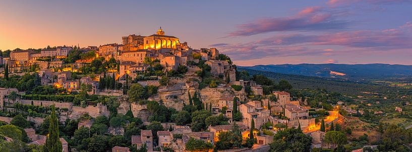 Koop de foto Panorama en zonsondergang in Gordes, Frankrijk van Henk Meijer Photography als print op canvas, aluminium dibond, (ingelijste) fotoprint, behang en ArtFrame. Voor jou op maat geprint in Fine-Art kwaliteit.