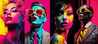 Panorama portret vrouwen en mannen met geschilderd gezicht en zonnebril, bodypainting pop art ontwerp verticaal