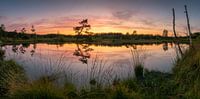 Deze foto, Panorama sunset Veluwe, is gemaakt nabij Vierhouten. (Gelderland, Nederland). De zon ging schitterend onder en er ontstonden mooie kleuren in de lucht. Deze kleuren werden ook nog eens weerspiegeld op het water. Een schitterende plek voor deze landschapsfoto.