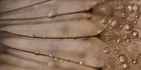 "Panorama van druppels op een dandelion" is een macrofoto van een aantal pluisjes op een paardenbloem met waterdruppeltjes. Het zachte warme goud bruine kleur geeft een ontspannende uitstraling. Een sfeer van rust en kalmte.
