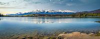 Helder water, weerspiegeling van de bergen in het water. Op de achtergrond bergtoppen met eeuwige sneeuw. Een typisch landschap voor Canada. Ongerepte wildernis.