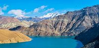 Koop dit landschapskunstwerk Panorama van een prachtig blauw meer in Tibet van Rietje Bulthuis op canvas, aluminium dibond, (ingelijste) fotoprint, behang en ArtFrame, op maat geprint in Fine-Art kwaliteit.