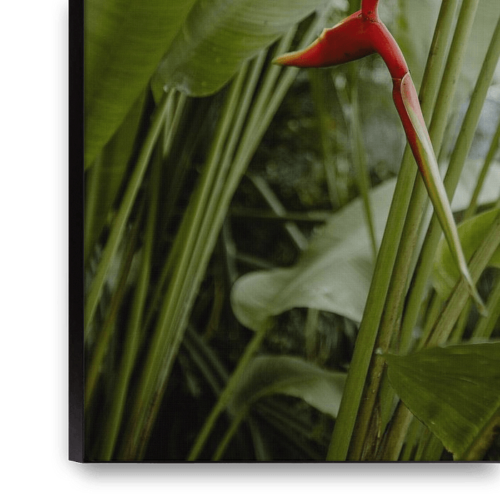De groene omgeving in combinatie met kleurrijke bloemen, mooier kan de natuur wat mij betreft niet zijn. Breng dat warme, tropische gevoel in huis door dit mooie werk aan de muur op te hangen.