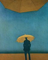 Ik kreeg het idee voor dit gestileerde werk toen ik in de regen liep met een paraplu in mijn hand. De paraplu belemmerde mijn uitzicht aan de bovenkant. Toen ik een andere persoon met een paraplu naderde, leek het alsof mijn paraplu een afspraak had met de andere paraplu.