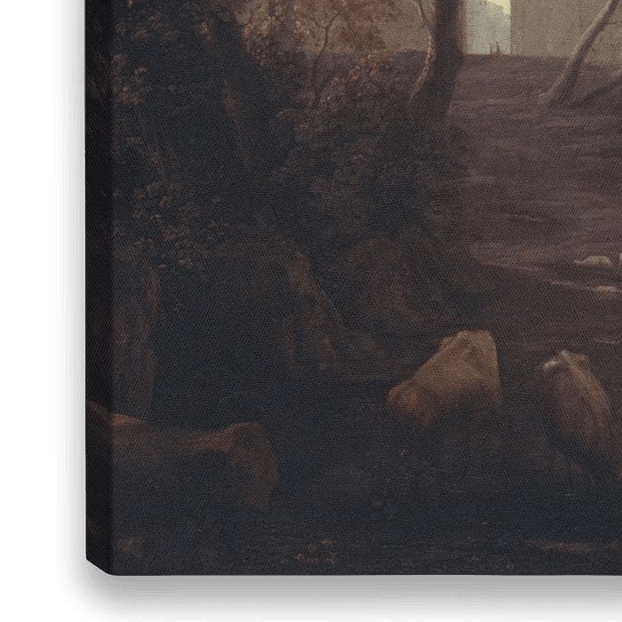 Koop Pastorale landschap: The Roman Campagna, Claude Lorrain als reproductie op canvas, aluminium dibond, (ingelijste) fotoprint, behang en ArtFrame, op maat geprint in Fine-Art kwaliteit.